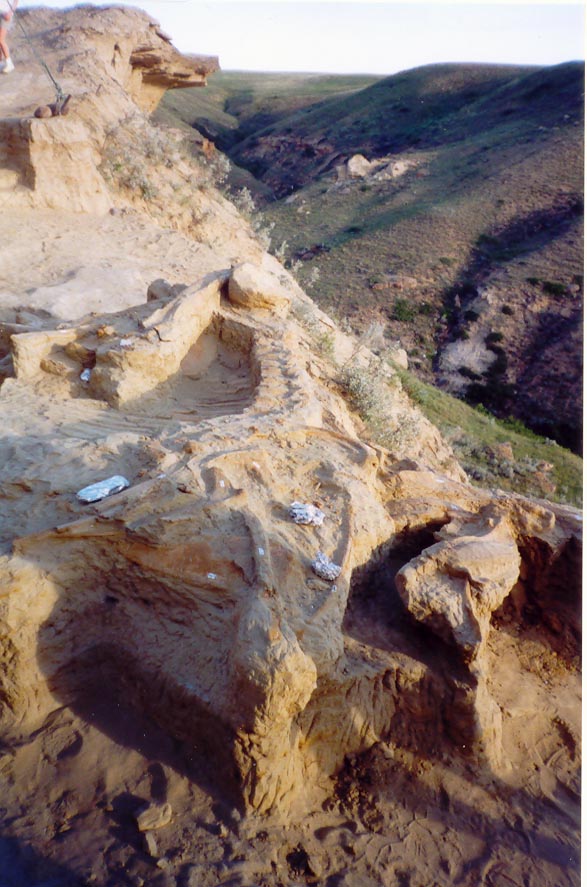 The dig rests on a narrow shelf. The site had to be enlarged by the team.